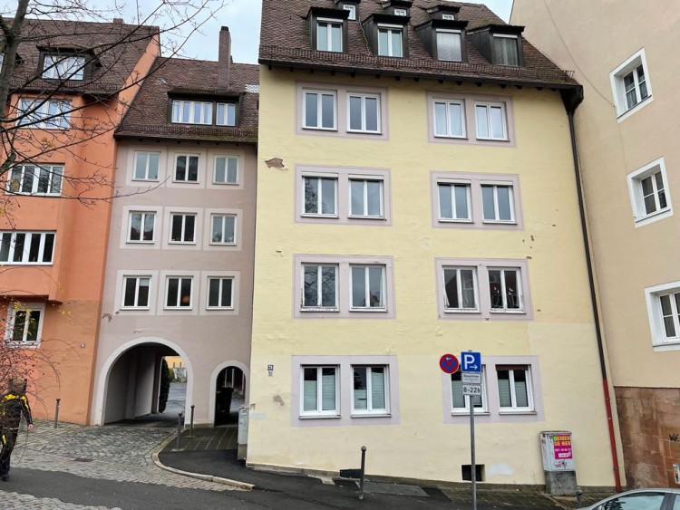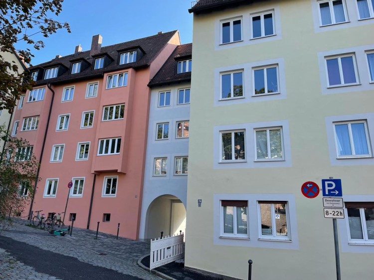 Diese Fassade in unmittelbarer Nähe zur Kaiserburg war schon sehr in die Jahre gekommen. Die Farbe bzw. die Feinputzschichten hingen in Fetzen und in Fladen herunter.