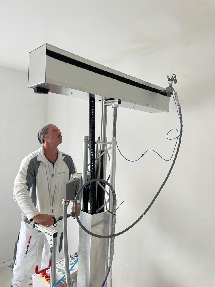 Neben dem hervorragenden Spritzbild und Oberflächenfinish des Spraybots verkürzen wir mit diesem modernen Gerät signifikant die Leerstandszeit von Wohnungen, bevor diese erneut vermietet werden können.